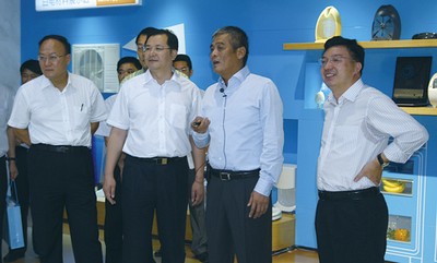 骆蔚峰先后调研了知识城起步区观景台、南起步区、科学广场、金发科技、区高技能人才实训鉴定基地。每到一处,骆蔚峰都听取相关负责人的汇报并作指示。在知识城起步区,骆蔚峰登上了刚完工不久的观景台,观看起步区的建设情景。骆蔚峰肯定了知识城近期的建设情况,要求相关部门加快道路、安置区和人工湖建设进度。