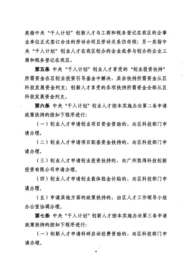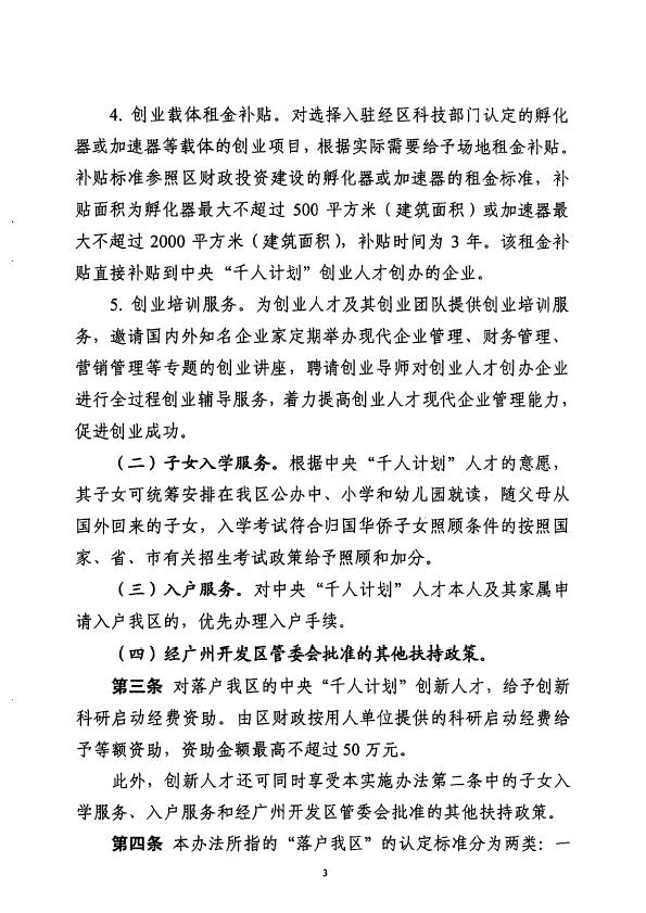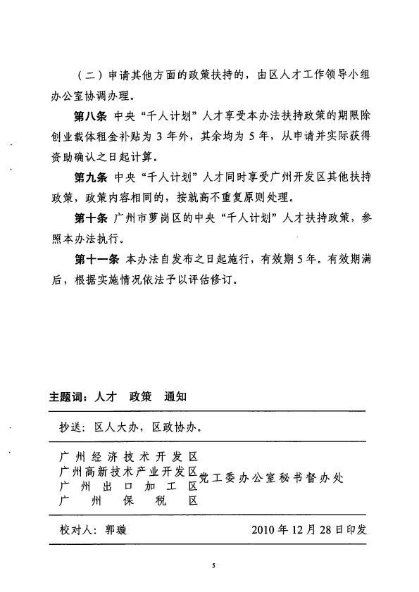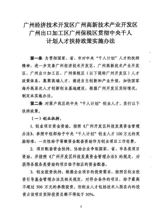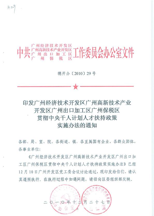 印发广州开发区贯彻中央千人计划人才扶持政策实施办法的通知