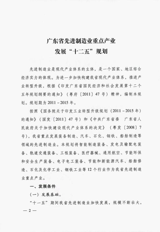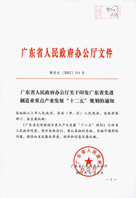 广东省人民政府办公厅关于印发广东省先进制造业重点产业发展十二五“规划的通知