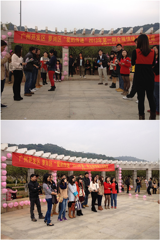 1月20日,由区员工服务中心、人文关怀中心主办,宏扬集团兄弟公司——广州盛世君悦旅游有限公司承办的2013年度“爱的传递”第1届金雁交友联谊活动在香雪公园举行。来自区内各企业的7个企业近50人参加了活动。