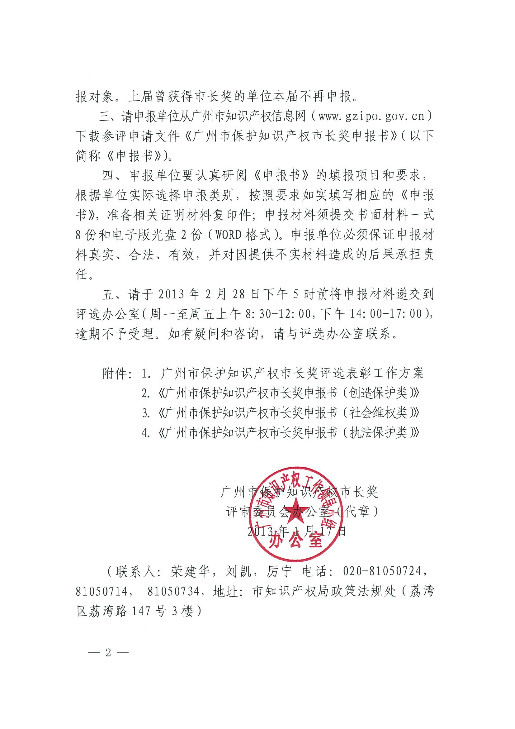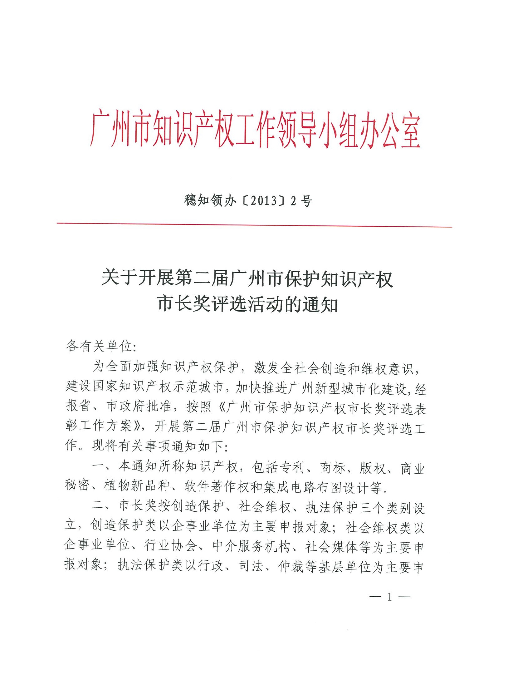 关于开展第二届广州市保护知识产权市长奖评选活动的通知