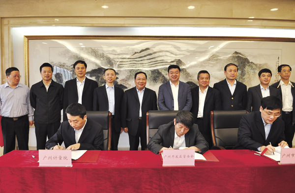 4月3日上午,我区与广州市质监局、广州计量院签订框架合作协议,共建国家光电集成成像显示产品质量监督检验中心(下称“光电集成国检中心”)。管委会副主任、区长李红卫,市质监局长梁建清、计量院院长潘伟等出席并致辞。管委会副主任蔡刚强代表我区签约,副区长严志明主持签约仪式。