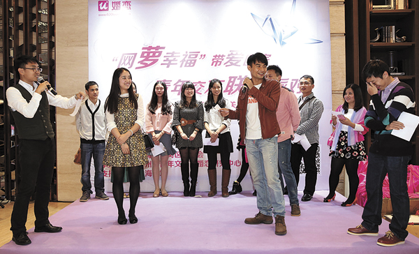 在中海誉城举办的“网萝幸福”带爱回家青年交友联谊派对现场,主办方通过游戏互动、写下印象卡、约会大冒险等环节,让参与者寻找心仪的对象。