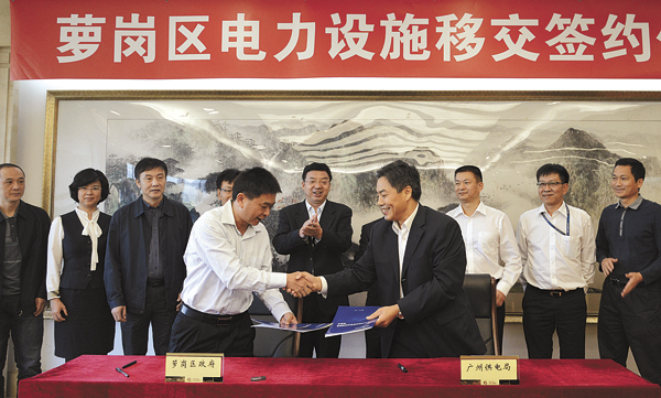 11月21日上午,萝岗区政府与广州供电局在区行政服务中心签署电力设施移交协议,正式将区政府投资建设的电力设施无偿移交给广州供电局。管委会副主任、区长李红卫,广州供电局局长甘霖出席。副区长张超平主持会议。