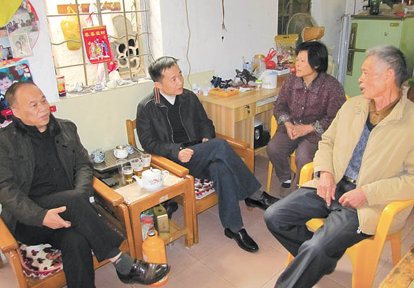 2014年12月23日,九龙镇党委副书记、人大主席黎信坤慰问走访了穗北社区困难户。他事先预约好时间,并准时来到穗北社区居民家中,逐户走访慰问。在一户因病致贫的困难户家中,黎信坤不仅向困难户详细询问家庭成员的情况、生活存在困难和相关诉求,还为困难户设身处地提出解决当前困难的建议。当天,他连续走访了多户居民,其中有残疾人、重病老人,还有贫困下岗职工和吸毒帮教对象家庭等。每到一户,都要求大家如实反映困难以及对政府工作的要求,并送上过冬棉被等慰问品。
