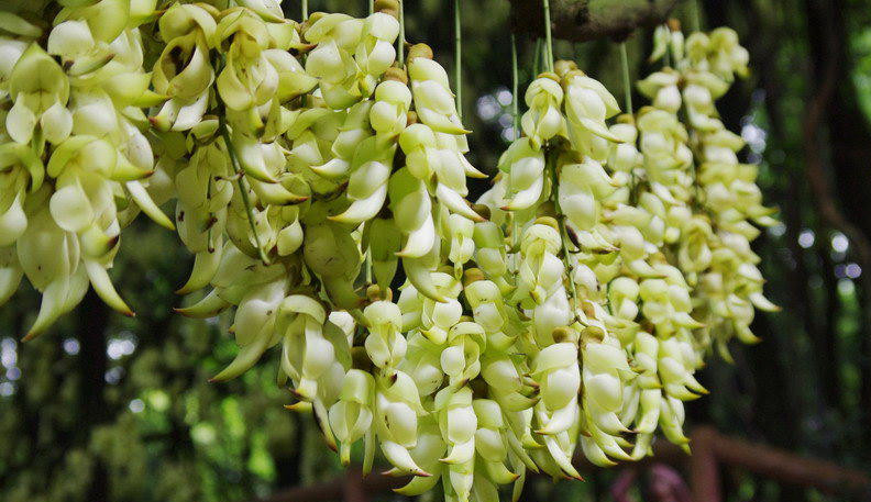 作为广州市惟一一处大规模禾雀花原生态景观,天鹿湖森林公园每年都吸引大批游客,禾雀花文化旅游节已成为众多广州市民郊游踏春的首选。记者在公园看到,目前禾雀花已进入盛花期,“一藤成景、千藤闹春”的景致令游客争相拍照留念。