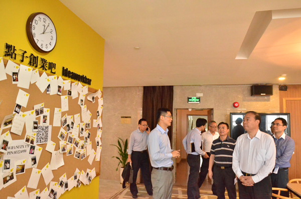 在“千人计划”南方创业服务中心,徐建培副秘书长听取了南创中心负责人对中心整体服务体系和“海创汇”创业特训班、“智汇广州”高端人才对接服务等品牌活动的工作汇报,实地考察了由南创中心与香港专业团队共建,旨在推动粤港青年人才交流合作的众创空间——点子创业吧。广州市委组织部杨忆副局级组织员、市科技创新委马曙巡视员,越秀区政府赖志鸿副区长参加了调研。