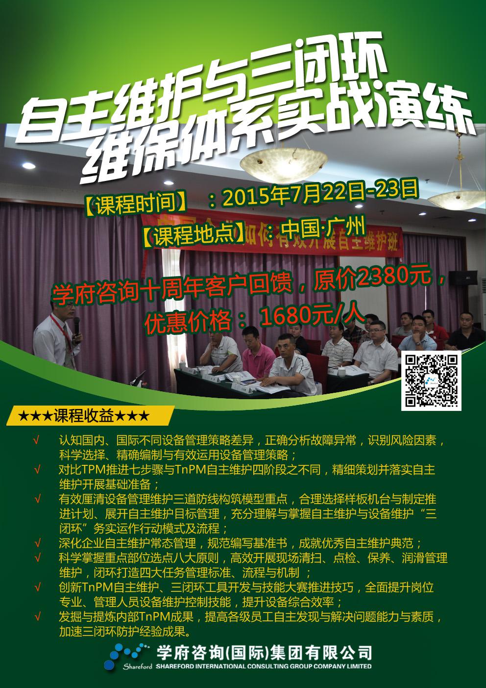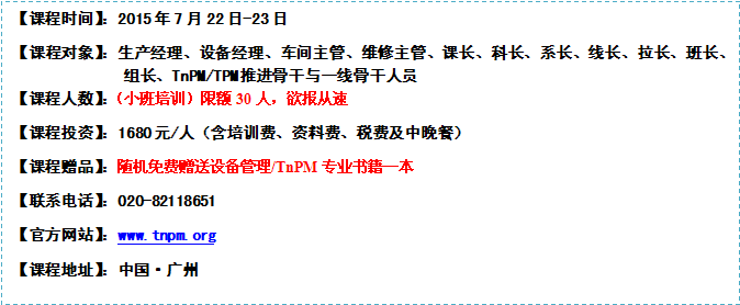 在工业4.0与中国2025概念席卷全球,众多企业不断推进战略纵深发展,持续追求智能化、信息化、精益化管理背景下,如何"安全、高效、低成本"地抓好设备管理,有效拓展内部自主维护,筑牢岗位、专业、精密三道维护防线,已成为一项支撑企业向上的艰巨而具有重要意义的组织任务。该课程可以引导企业设备操作、专业、管理各级人员自主对其所用、所修、所辖设备进行必要的维护活动和必要的改善(进)活动,并通过这些活动,预防、控制设备劣化源头、现象,减少各类故障与其他损失的发生,使我们的设备效率、生产效率得以提升,同时,使我们的员工技能素质、班组现场管理面貌得到全面提高。