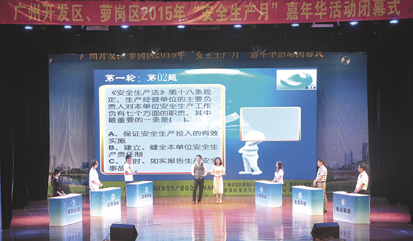 每年6月的“安全生产月”嘉年华已成为我区的品牌活动。今年,通过整合政府、街镇、企业资源,我区举办了“责任在肩·护航萝岗”、“街镇风采·活力萝岗”、“安全之花·遍开萝岗”、“夯实责任·坚守萝岗”四大篇章36项活动,形成“政企联动、各界献技”的安全生产宣教新常态,营造“依法治安,你我有责”的社会环境和舆论氛围。