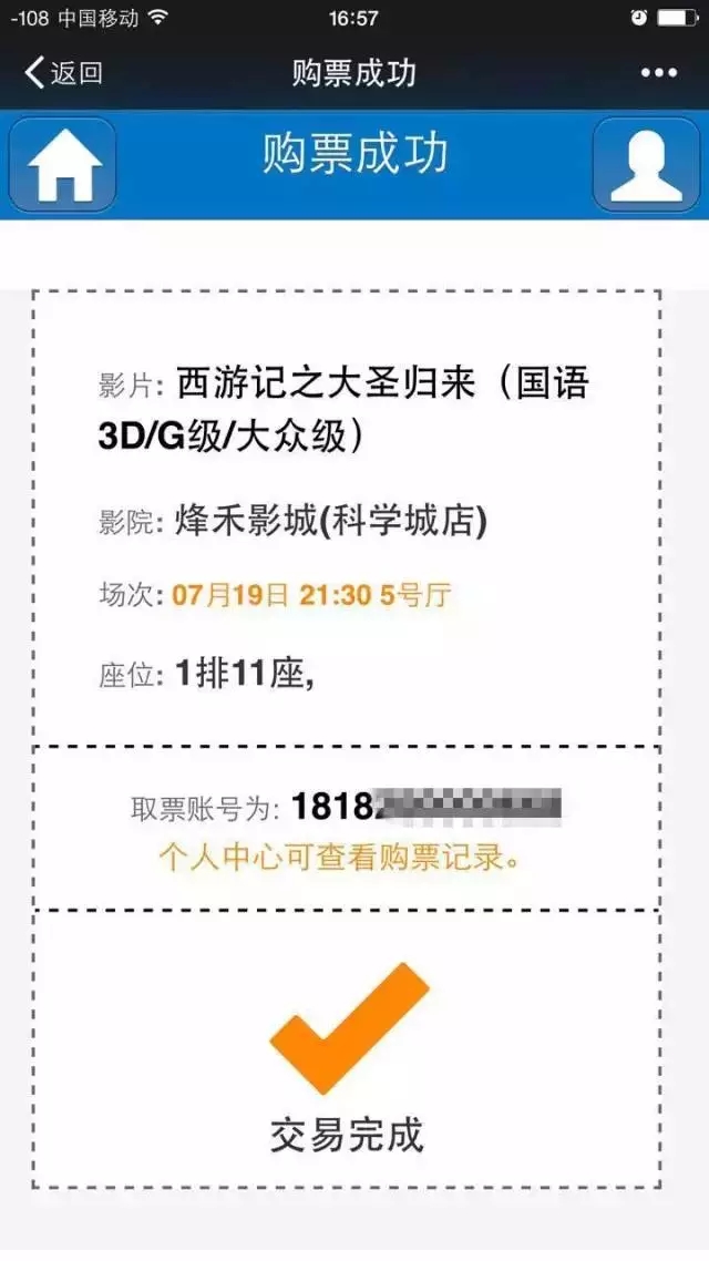 *购票成功后请务必携带您的会员卡、贵宾/体验票,来影院自助机取票哦!