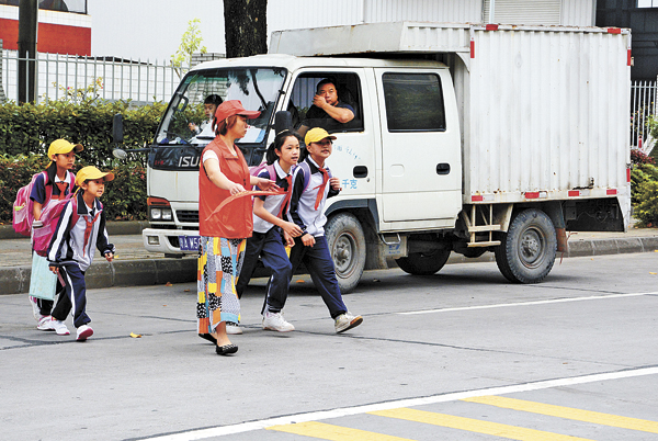 黄埔区新庄小学有一个家长护航队,几年来,他们自愿为学生的上学、放学护航,确保学生安全到校、平安回家。自从有了护航队,新庄小学校门口再没过发生过交通事故。