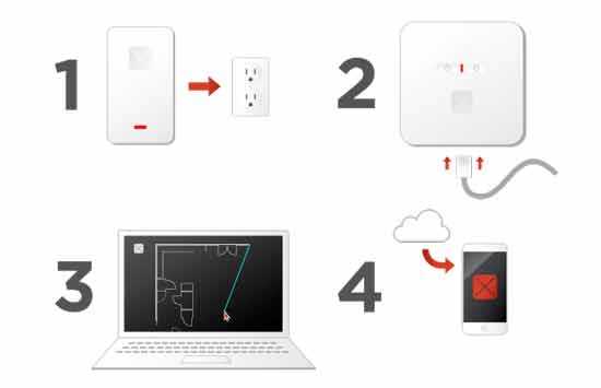 使用智能家居系统Xandem Home智能系统的方法大致是这样的:你将套装中的10个节点插入到家里的墙壁电源上。通过使用配套的APP在手机上定位出你安插设备的地方。最后,你可以直接在手机看到监控范围内所有人的移动情况。