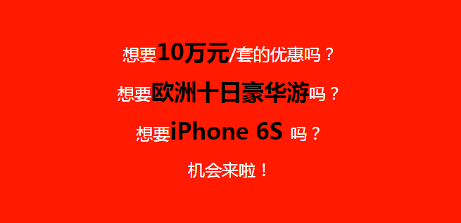 想要10万元/套的楼款优惠吗?想要欧洲十日豪华游吗?想要iPhone 6S 吗?
