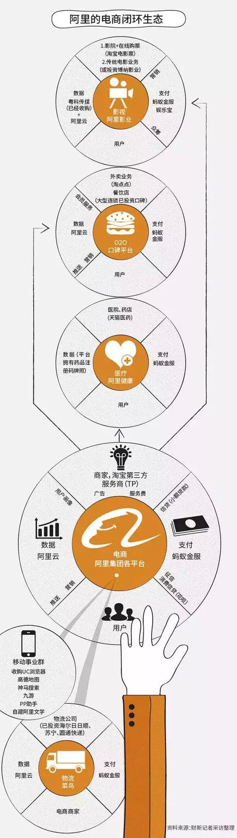打通云和端,控制各条战线,最终落地金融支付和数据变现,形成闭环的移动电商生态体系。
