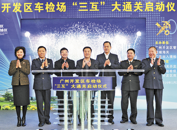 保税区海关关长陈平介绍:“广州开发区车检场具有四个特点,一是全国海关内率先使用总署金关(二期)智能卡口系统,二是在广州市陆运口岸中第一家同步落实陆运三互大通关模式,三是实行智能化验放,四是叠加了出口加工区和公路转关等监管业务。这四个特点形成组合拳,将使企业通关更为便捷。”