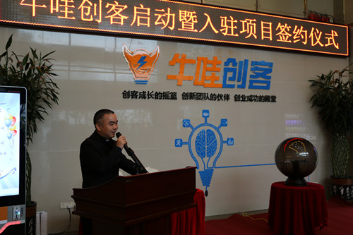 仪式首先由牛哇创客创始人张万国介绍牛哇创客的基本情况以及发展愿景。牛哇联合创始人吴惊声代表合伙人致辞,分享了自己的创业之路。索答信息CEO石忠民博士分享了牛哇创客创始人在他创业道路上的支持与帮助。
