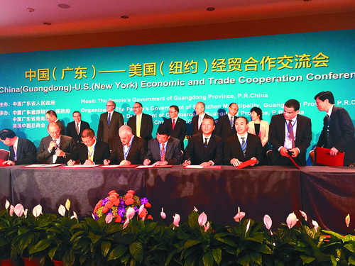 在5月13日纽约市举行的中国(广东)-美国(纽约)经贸合作交流会上,我区跟进的KATEEVA OLED面板打印设备生产基地项目作为广州市推荐的4个签约项目之一。由李红卫与KATEEVA董事局主席Alain Harrus作为双方代表,在胡春华等中外领导的见证下进行了签约。