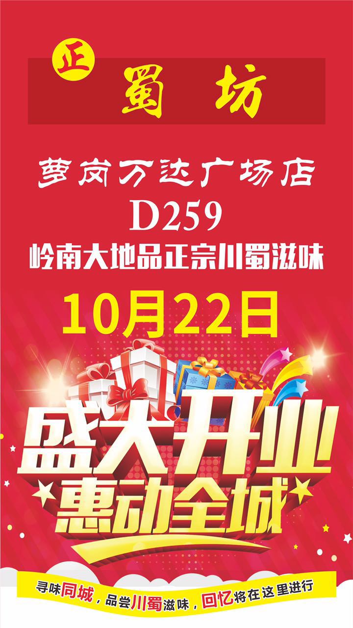 【萝岗万达--正蜀坊】盛大开业,惠动全城~10月22日 正式开业