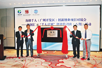 在当天举行的“千人计划”专家系列活动启动仪式上,南创中心与我区合作共建的海创千人(广州开发区)创新创业服务中心揭牌成立。