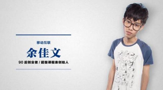 创业,对于年轻的我们而言,是一个充满激情,却又有点遥不可及的话题。创业这条路,有点遥远,又有点坎坷。有些人,骄傲而脆弱的,似乎经历不得一点点的挫折打击;而有些人,却可以越挫越勇,绝不轻易说失败。今天的故事主角,是个九零后,超级课程表的CEO——余佳文。
