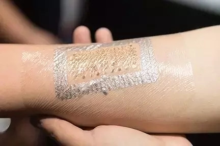 这个薄如蝉翼的贴片是由一家名叫 Rotex 的初创公司展出的 " 智能纹身 ",只要把它贴到皮肤上,就可以检测你的身体数据,比如在运动过程中测量心率、肌肉疲劳度等。