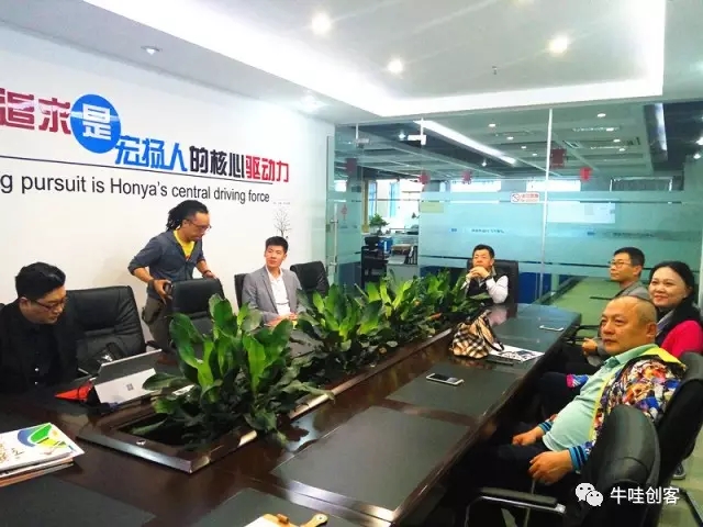宏扬集团董事长张万国(左四)、牛哇创客总经理杨勇(左三)及牛哇创客团队与金蟾猫团队合影