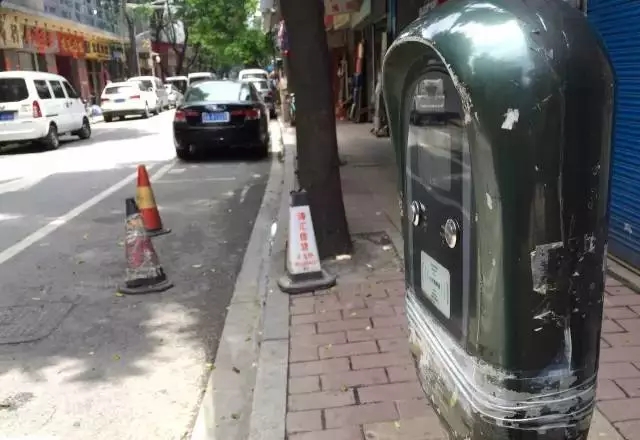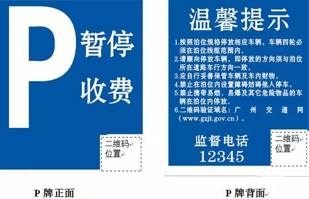 1.车主可现场通过P牌进行识别,如果P牌内容标注为“咪表停车”,则是属于仍处于经营收费的咪表泊位;如果是标注为“暂停收费”,则属于免费使用泊位(见图);