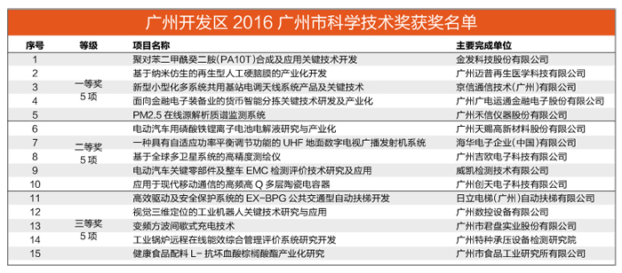2016年,为落实市出台的系列科技政策,广州开发区加强政策宣传培训,出台了“1+7”区科技配套政策,不断增加科技资金投入,引导企业加大科技创新,通过大力培育,区内单位涌现出了一批优秀科技成果: