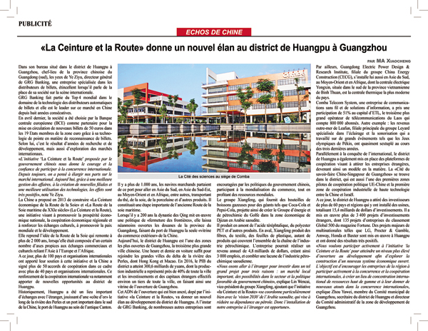 编者按: 近日,“一带一路”国际合作高峰论坛在北京圆满闭幕。5月17日,法国《世界报》以半个版的篇幅刊发新华社特稿《“一带一路”为广州黄埔区吹来“开放”东风》。该报是法国第二大全国性日报,是法国在海外销售量最大的日报,在法语国家地区颇有影响。