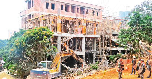 在这种危险情况下,永和街道办一边组织街道和社区工作人员对围观群众和当事人进行劝说,一边组织公安和安保人员稳控现场秩序,最终将2栋违建依法拆除。