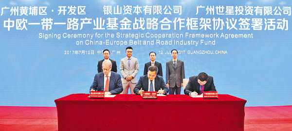 欧洲高端项目投资黄埔区、开发区有了“资本引路人”。7月12日,黄埔区政府、开发区管委会与广州世星投资有限公司、银山资本有限公司签署“中欧一带一路产业基金”(下称“中欧基金”)战略合作框架协议,基金总规模预计超100亿元,首期20亿元。