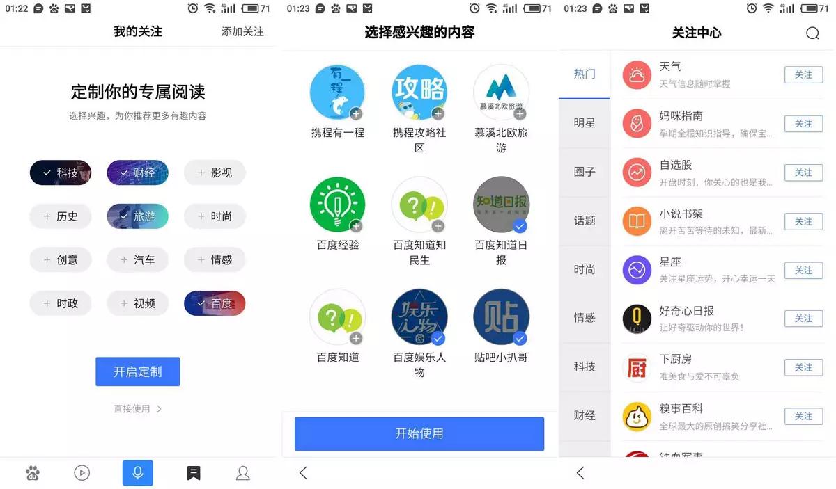 至于“关注”界面,略像以前的聚合阅读,也有点像今天的头条号和微信公号,这些都是百家号。