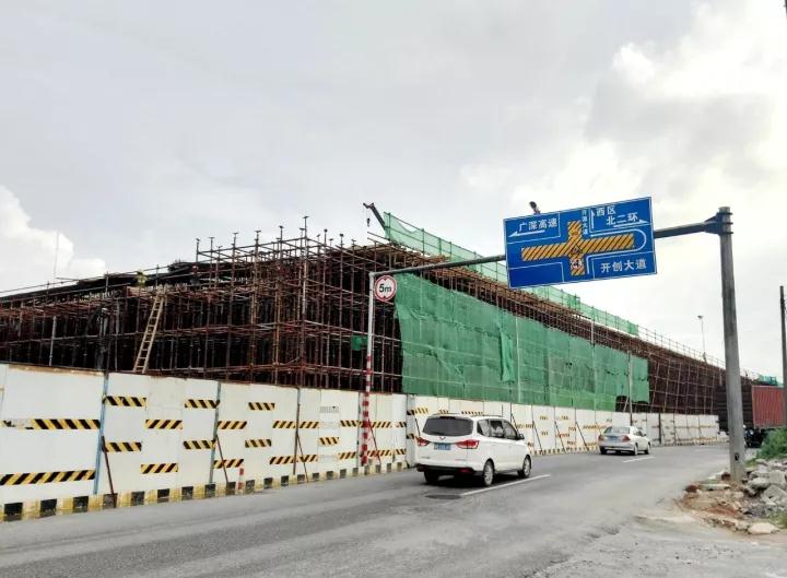 ▲开源大道右转开创大道,跨线桥部分围蔽施工