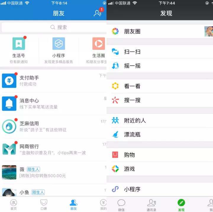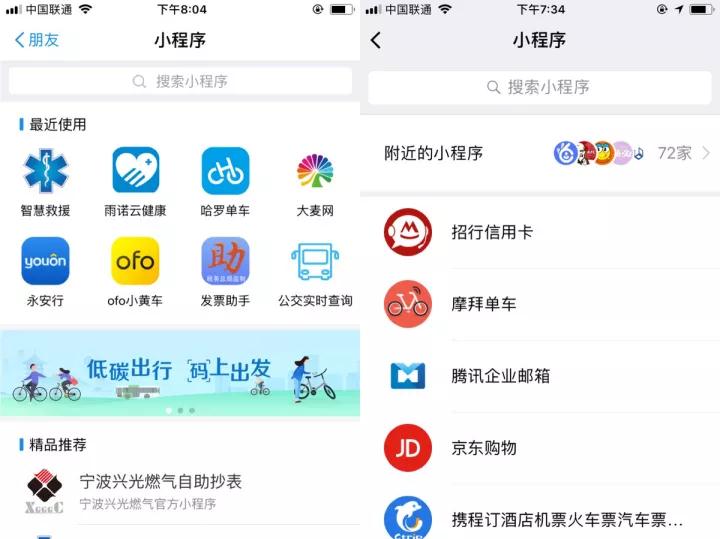 在产品设计逻辑上,微信小程序较为专注,简约、直观,只提供了搜索功能及竖排的最近使用小程序列表,更加照顾用户体验。而支付宝小程序的功能性更复杂,商业属性更强。支付宝小程序与微信最大的不同,就是预装了20款不可删除的小程序广告位。