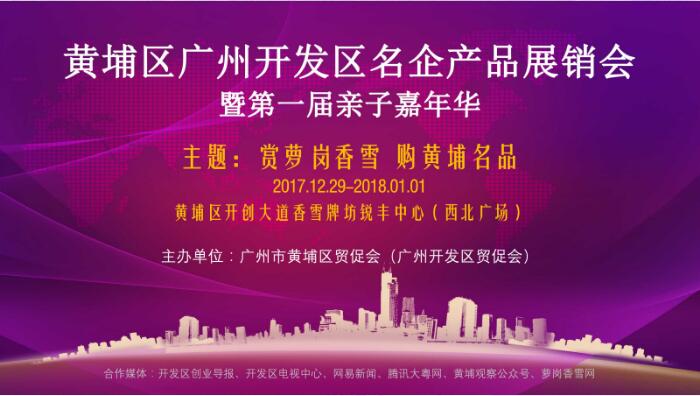 在2017年萝岗香雪文化旅游节举办期间,为让广大游客更好地体验香雪文化旅游节的乐趣,也为更好地宣传我区企业和名优产品,擦亮“萝岗香雪”品牌,增添绚烂色彩,由黄埔区贸促会(广州开发区贸促会)牵头的“黄埔区广州开发区名企产品展销会暨第一届亲子嘉年华活动”将于2017年12月29日至2018年1月1日(共四天)在黄埔区开创大道香雪牌坊锐丰中心(西北广场)举办。