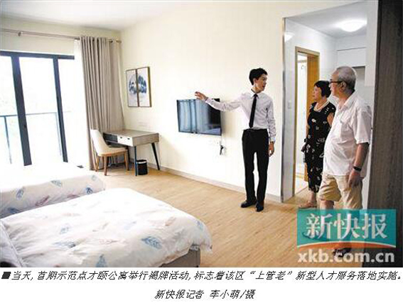 新快报讯 记者李应华 通讯员杨莉 郭哲涵报道 黄埔区、广州开发区建成全国首家高端人才养老公寓,昨日起接受公开申请,区内高层次人才父母可拎包入住,用“一碗汤”的距离解决人才后顾之忧,创业、尽孝两不误。当天,首期示范点才颐公寓举行揭牌活动,标志着该区“上管老”新型人才服务落地实施。据广州开发区人才工作集团董事长陈永品介绍,人才配偶的父母也可申请入住高端人才养老公寓,服务设计相当周到体贴。