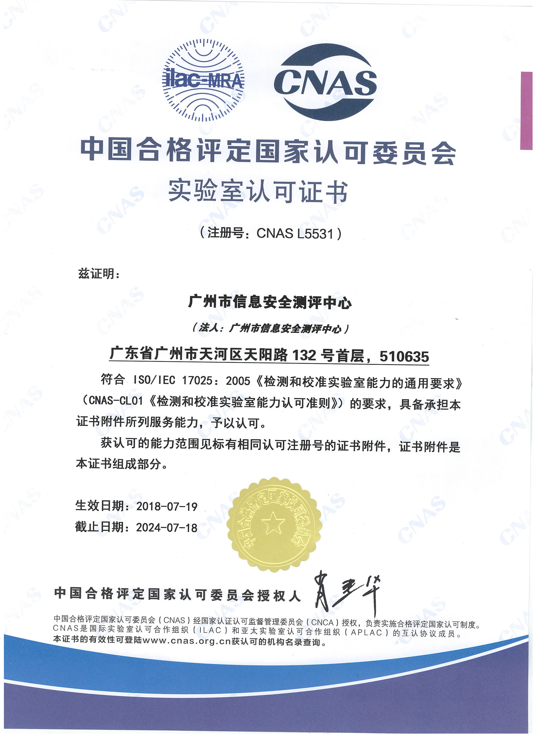7月19日,市信息安全测评中心通过评审,再次荣获中国合格评定国家认可委员会(CNAS)颁发的检验机构和实验室认可证书。