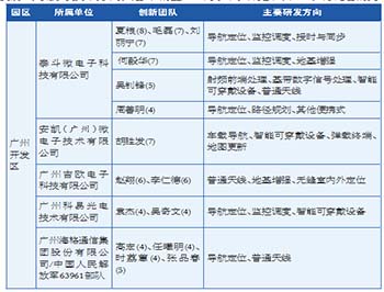 4.专利创造人才储备情况与其他园区相比处于中游偏下水平。在服务和应用(运维)方面导航定位、监控调度方向具备一定的人才储备,创新团队主要来自泰斗微电子、海格通信等企业,但相比于上海北斗和南京北斗产业园区,总体创新团队以及研发人员数量偏少,综合实力在几大园区中处于中游偏下的水平。详见下表——人才储备情况: