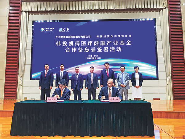 黄埔区、广州开发区引进第一家外资风投机构。10月18日,广州凯得金融控股股份有限公司与韩投伙伴(上海)创业投资管理有限责任公司签署合作备忘录,双方将在我区合作设立规模达10亿元的韩投凯得医疗健康产业基金。至此,我区风险投资机构达293家,管理资金规模超700亿元。管委会副主任孙学伟参加活动。